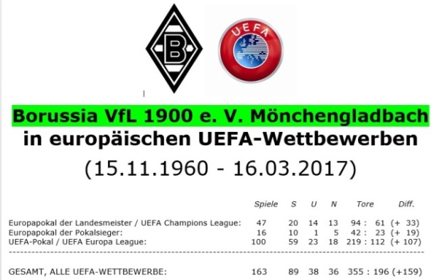 Positiv ist es, daß wir in dieser Saison die ganzen 12 Europapokalspiele bestritten haben. Zuletzt ist uns so etwas noch vor 37 Jahren gelungen, in der Saison 1979/80 als wir im UEFA-Pokal-Endspiel gegen Frankfurt knapp unterlegen waren (3:2 und 0:1).