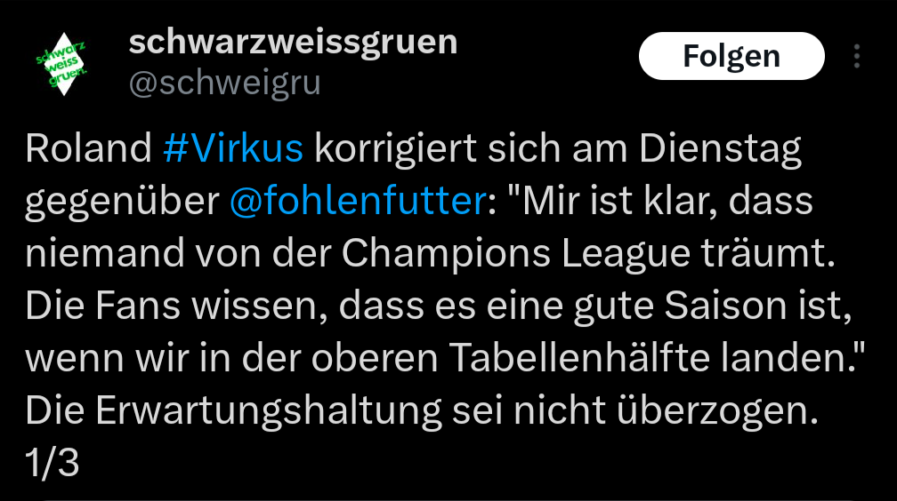 es könnte natürlich auch sein das virkus zum zeitpunkt dieser aussage fest davon überzeugt war noch was in der defensive tun zu müssen/können und er "intern“ eingenordet und ausgebremst wurde .