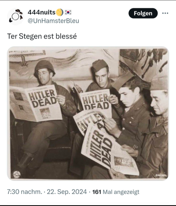 Da dankt der Neuer endlich ab und lässt Marc seine Chance in der NM und dann das.