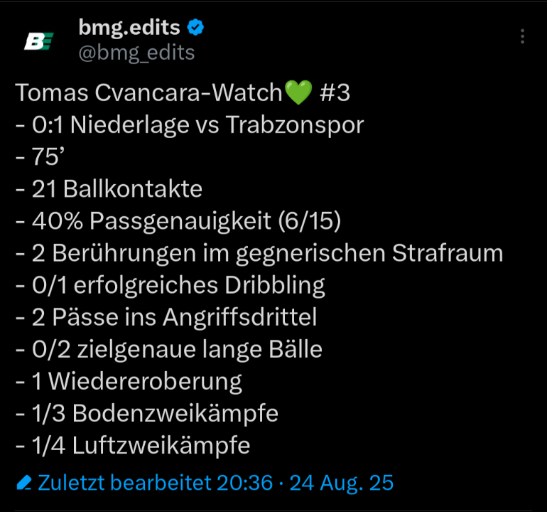 Denke es war der Wunsch des Vereines es so haben zu wollen,der Spieler hat im Frühjahr klar gesagt das er weg möchte. Der Verein sollte sich in Zukunft nicht mehr so offensiv äußern wenn eine Sache schon im Vorfeld verfahren ist.Kampfknolle hat geschrieben: 24.07.2025 21:44 Es war doch auch mit ihm und seinem Berater abgeklärt, dass er sich hier durchbeißen soll.