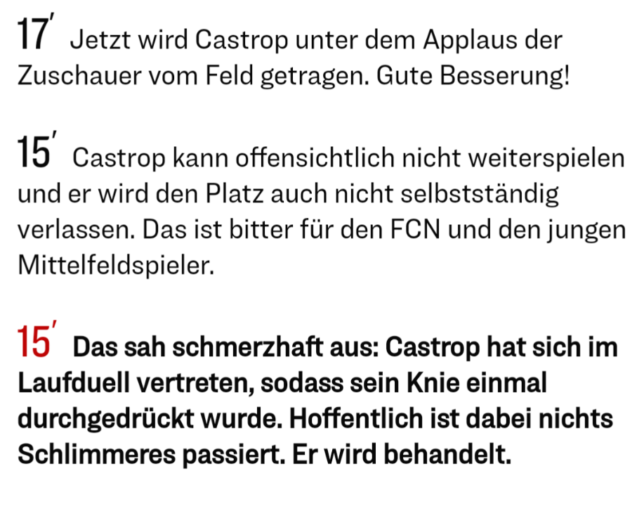 Musste mit der Trage vom Feld. Konnte nicht selbstständig vom Platz gehen. Super. Passt irgendwie
