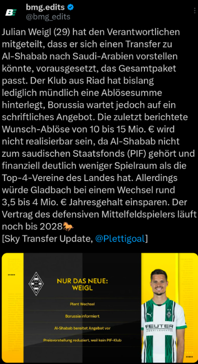 Wäre ich Weigl und meine Familie fände es in der Gesamtheit gut, würde ich auf 1-2 Jahre rüber und mir die Kohle einsacken. Aber nur wenn's halt passt