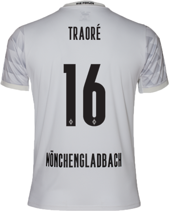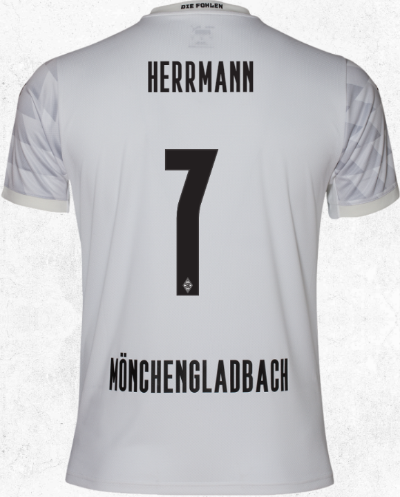 "Kleine angewinkelte Rauten ziehen sich über das gesamte Kurzarm-Trikot, auf der Vorderseite veredeln die Borussia-Raute, die beiden Meistersterne und das PUMA-Logo den sportlichen Look. Borussias neuer Hauptsponsor flatex ziert die Brust, der Schriftzug „Die Fohlen“ im Nackenbereich rundet das Design ab."