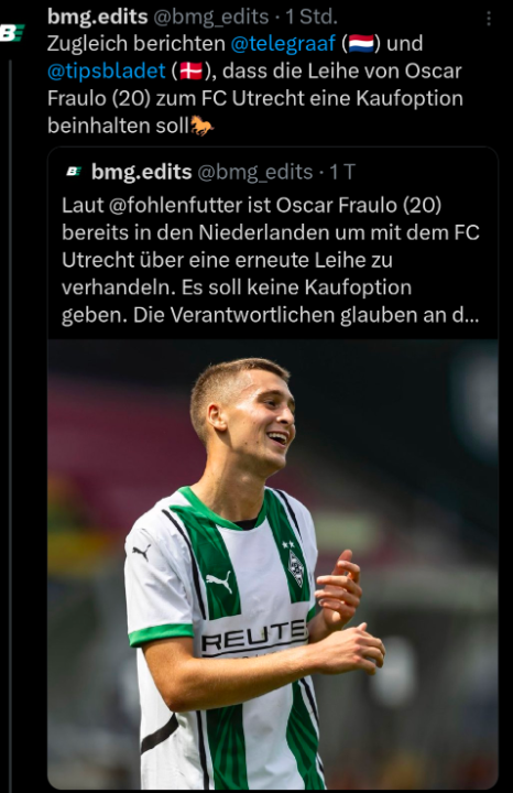 Borussia Mönchengladbach: Fraulo für Verhandlungen in Utrecht via @Onefootball. Read it here: