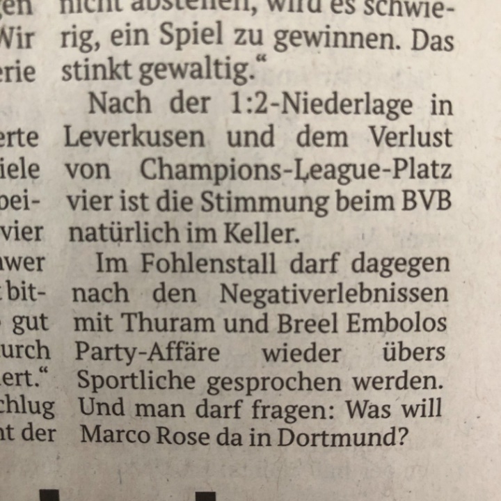 Und solange da keine klare Antwort von Rose kommt, muss man mit einem Abgang rechnen.