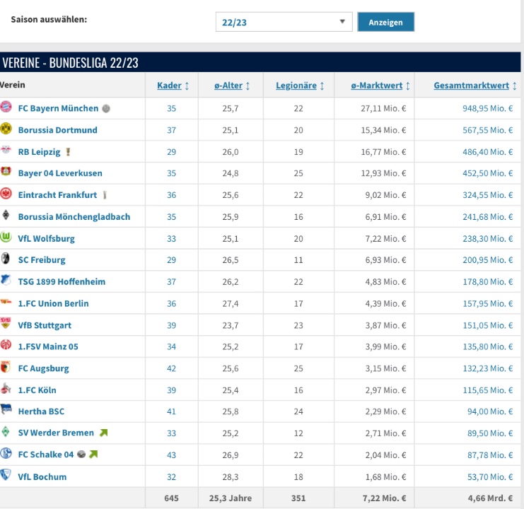 Fairerweise hätte man den Marktwert am Anfang der Saison 23/24 darstellen sollen
