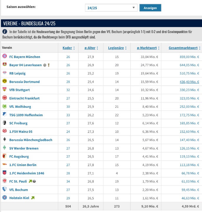 Also kann man die Daten von Transfermarkt.de getrost ignorieren?