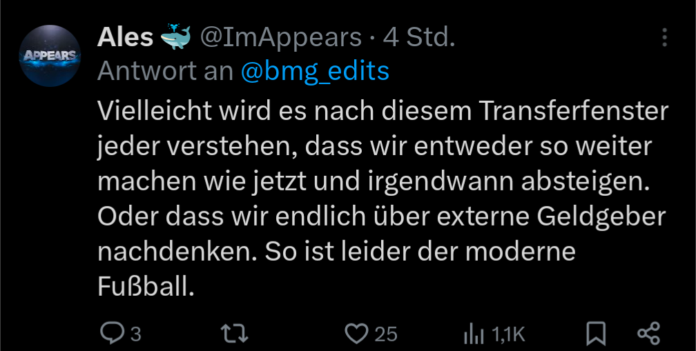 Gut, er labert viel, aber ich finde seine Videos meistens interessant. Er greift ja immer aktuelle Themen rund um die Borussia auf. Und bei ihm hatte ich schon von diesem Avdullahu-Gerücht gehört, bevor es hier gepostet wurde.
